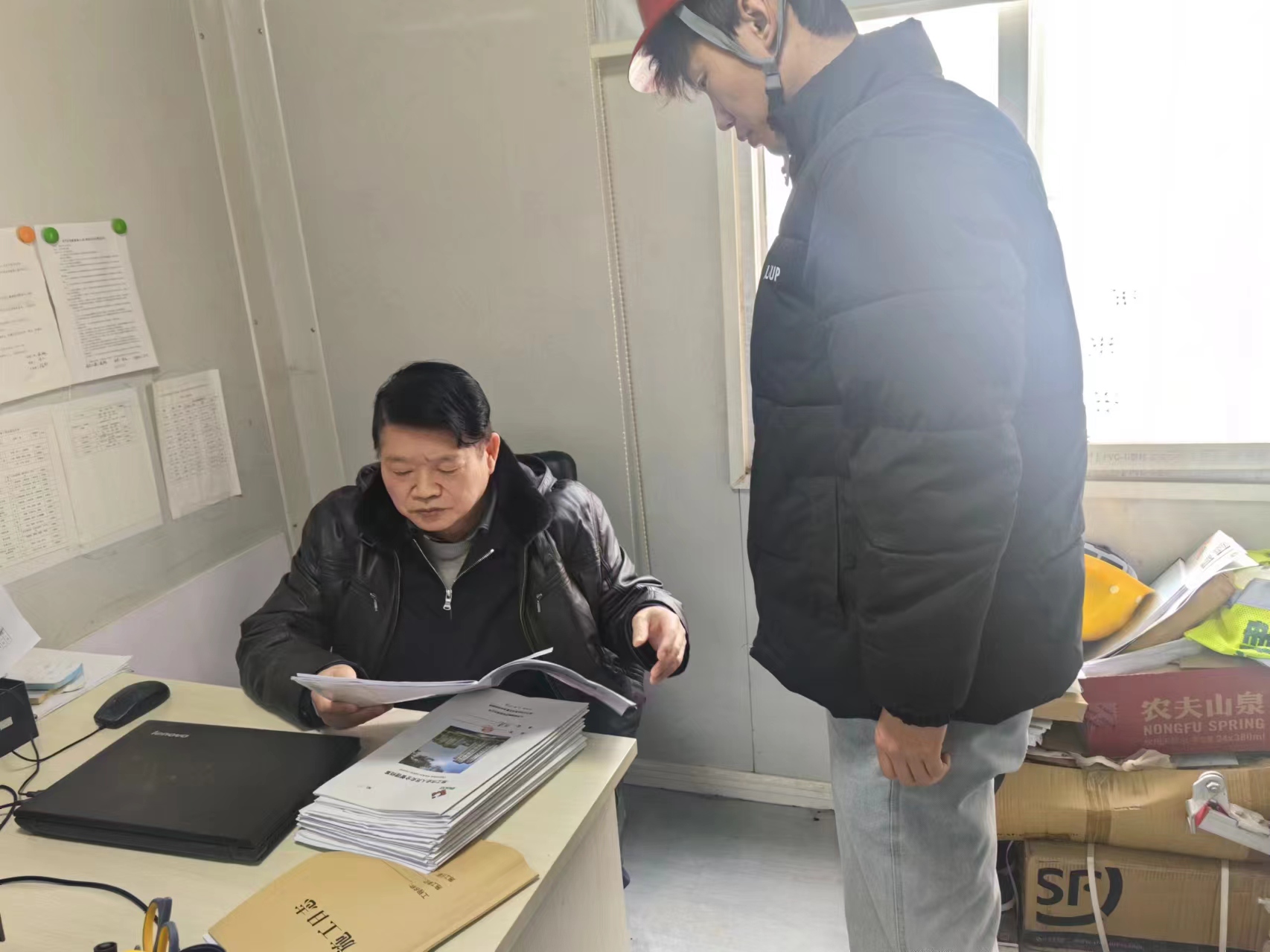 公司劉總、張部長對沙河項目現場所需的材料規劃進行核實并作出調整