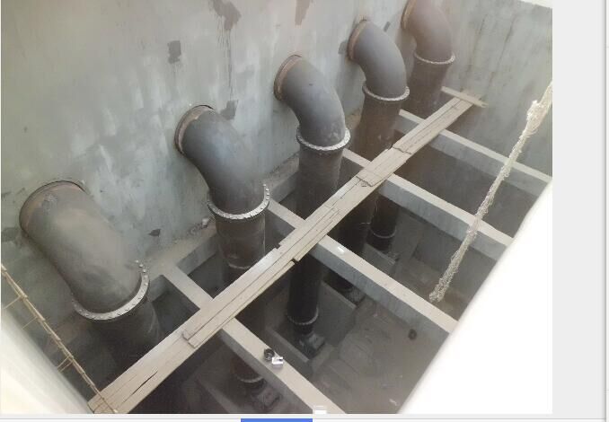 DN900進水提升泵管道安裝。材質(zhì)為螺旋焊接鋼管,垂直安裝,高度11.2米。